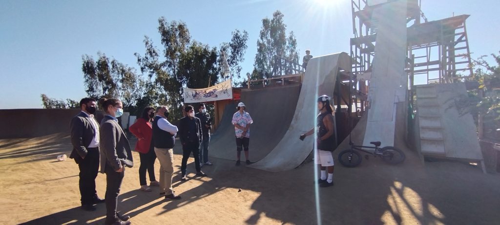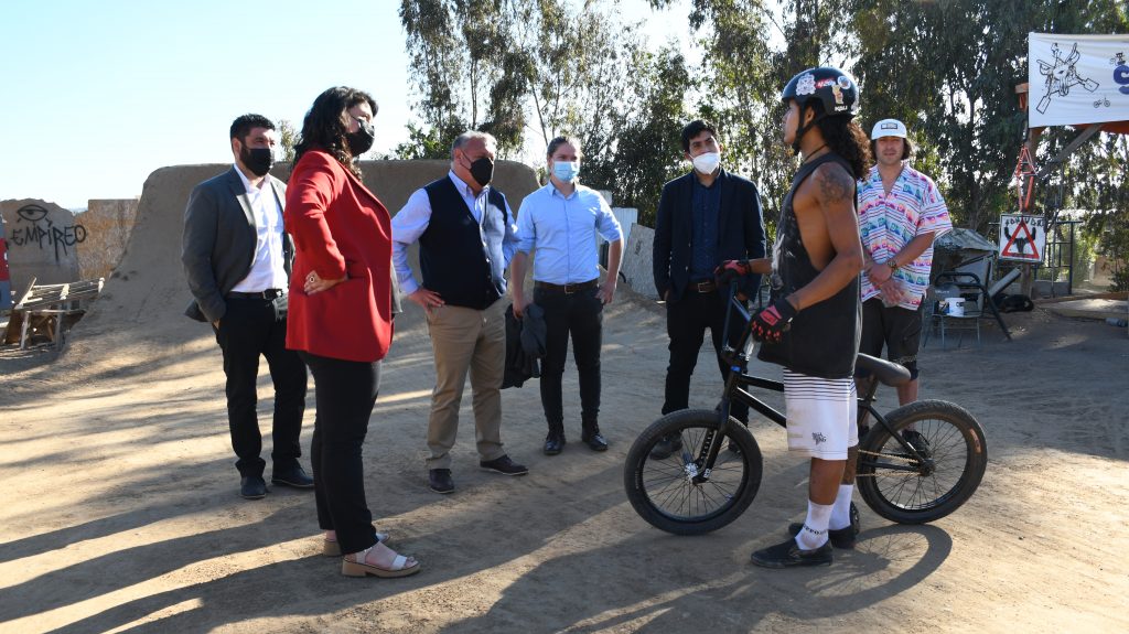En paralelo, añadió, “nos hemos comprometido en apoyar a impulsar proyectos tremendamente importantes para la comuna, en particular el Plan de Desarrollo Comunitario, el Pladeco. Sabemos también de las necesidades que hay hoy día en torno al retiro de los residuos sólidos domiciliarios, ahí vía circular 33, tenemos la posibilidad de empujar y apoyar aquellos proyectos. Nos importa muchísimo colocar en la centralidad la vida digna, la vida humana”. La alcaldesa, Javiera Toledo y el gobernador regional, Rodrigo Mundaca, también visitaron el Dirt Park BMX, ubicado en calle Sexta, donde funciona una escuela- taller, gratuita y autogestionada por jóvenes que se dedican a desarrollar este deporte, característico por sus saltos y acrobacias con bicicletas.