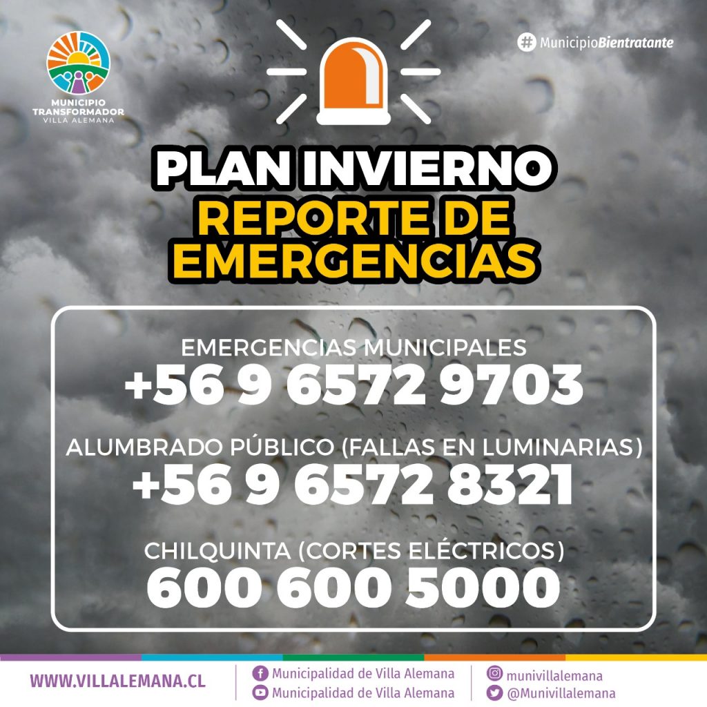 “Se nos acerca un nuevo sistema frontal, un sistema frontal frío que traerá bastante precipitaciones a la región de Valparaíso, especialmente también a las comunas. Estas precipitaciones están oscilando entre los treinta y cuarenta milímetros de agua, en un período que va a comprender entre el día sábado nueve y domingo diez de julio”, precisó el encargado de la Unidad de Emergencias de la Municipalidad de Villa Alemana, Claudio Pérez.