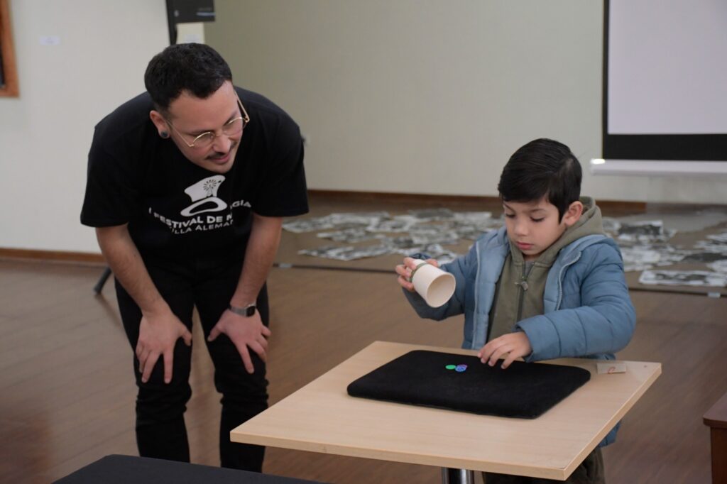 Sumado a esto, recordemos que el 13 y 14 de julio en la sala de exposiciones del Centro Cultural Gabriela Mistral, se realizaron dos talleres de magia exclusivos para niños y niñas, de entre 6 y 12 años. En ese montaje pudieron aprender más sobre la disciplina y aplicar el truco aprendido en la jornada.