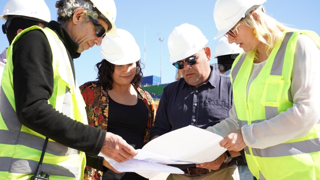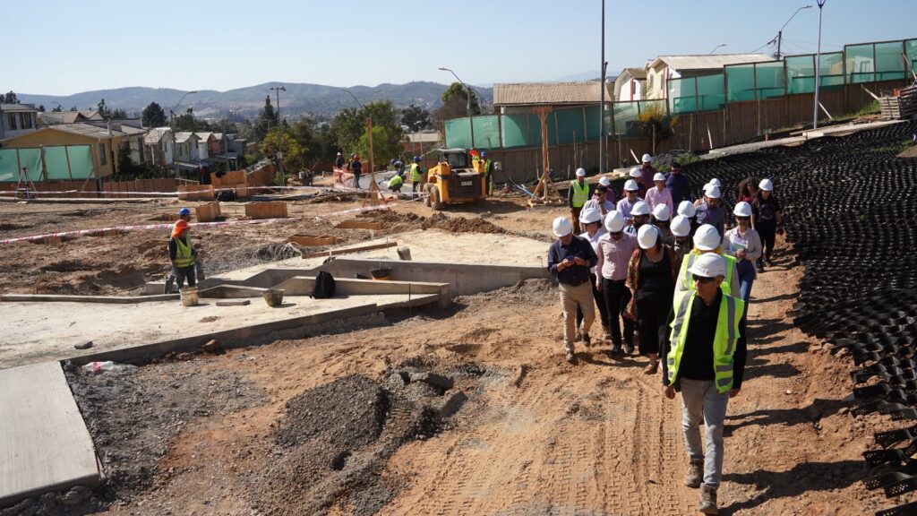 Dirigentes del sector acompañaron a la alcaldesa de Villa Alemana, Javiera Toledo, y al gobernador regional de Valparaíso, Rodrigo Mundaca, a una visita a las obras para ver el avance de la construcción.