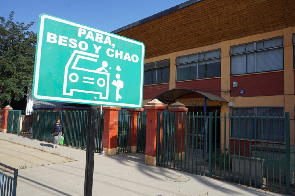 Dentro de las primeras acciones, está la implementación de las nuevas señaléticas en escuelas enmarcadas en la campaña “Para, beso y chao”, las cuales fueron instaladas al exterior de todos los colegios, escuelas y liceos municipales de la comuna.