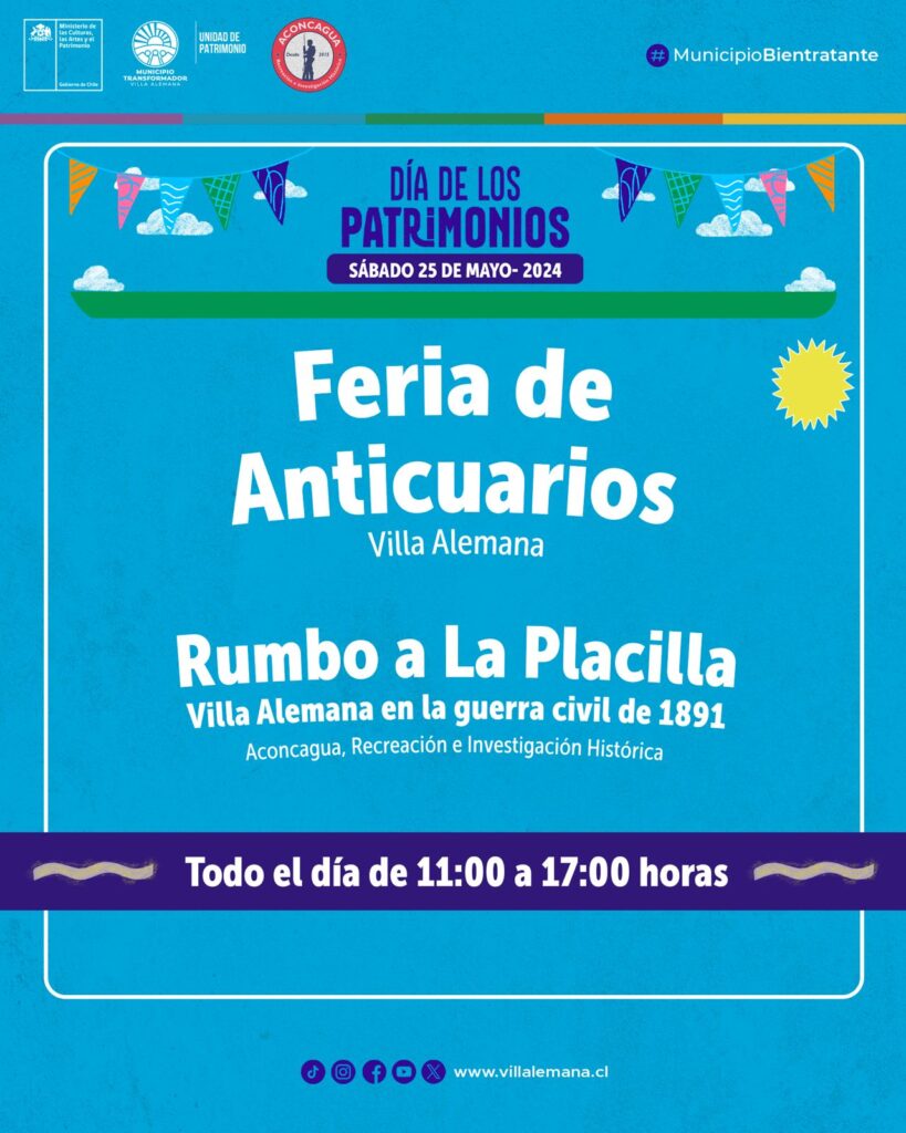 - Rumbo a La Placilla: Villa Alemana en la Guerra Civil de 1891: Aconcagua, Recreación e Investigación Histórica 11:00 – 17:00 horas