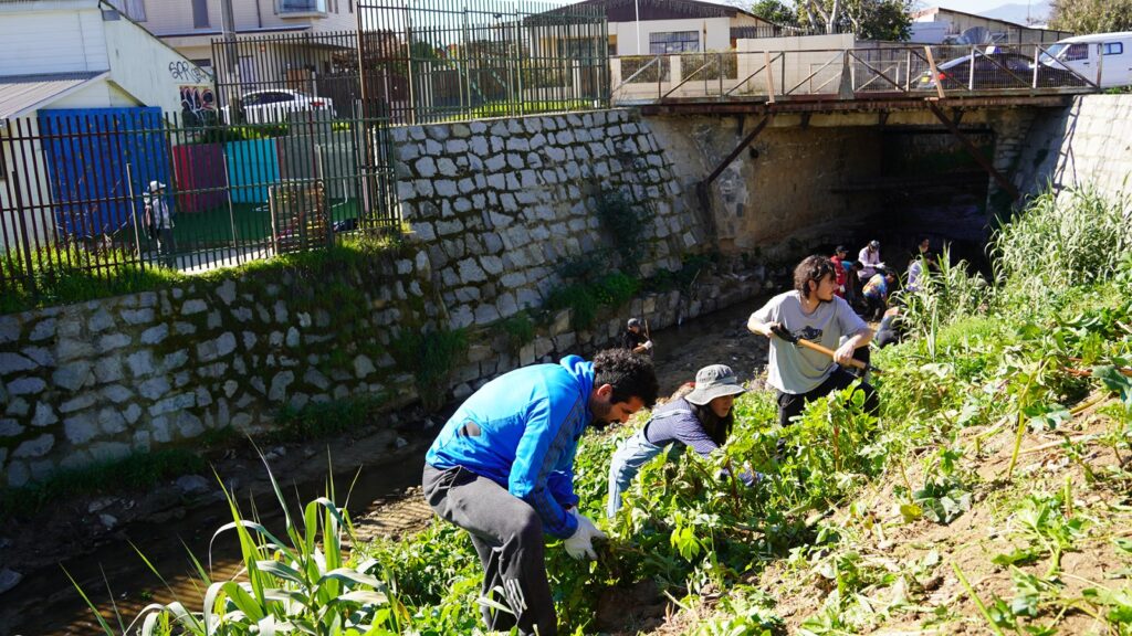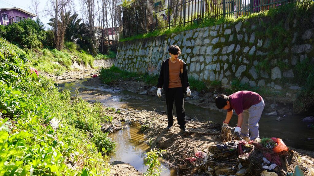 La iniciativa nació por la preocupación desde la comunidad educativa, quienes recurrieron al municipio para hacerse cargo en conjunto de la recuperación del estero Huanhualí, una zona que solía ser un microbasural y un espacio con poca seguridad para las y los estudiantes de la Escuela Melvin Jones.