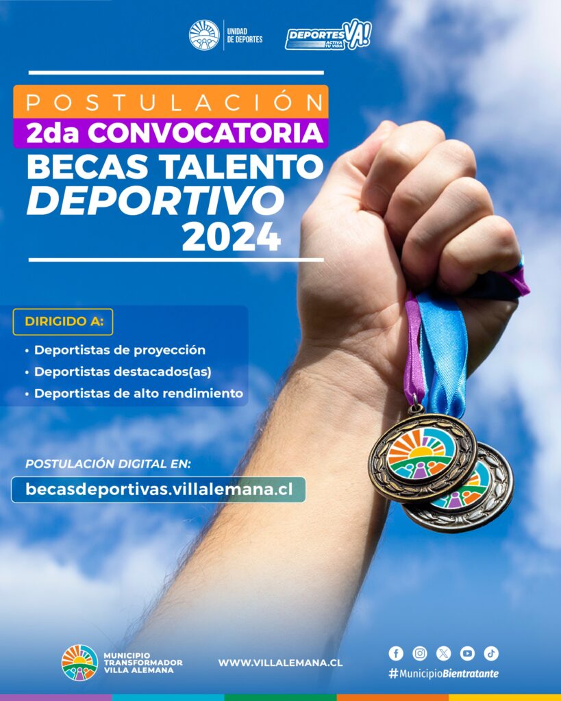 “Sabemos lo relevante que es el deporte y por eso es fundamental verlo desde una mirada social. Este segundo llamado de las becas deportivas es un apoyo directo a los talentos villalemaninos, así que les invitamos a todos y todas a participar de este apoyo que fue creado para ustedes”, agregó la máxima lideresa comunal.