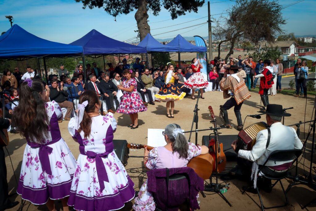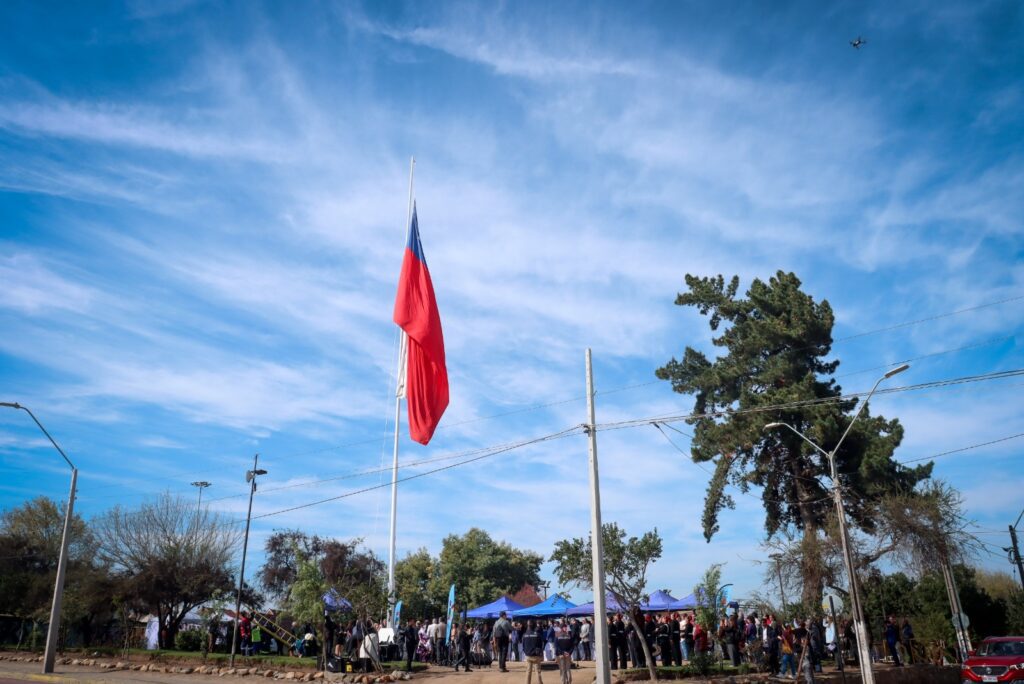 Municipalidad realizó ceremonia en la plaza Cavada, en el paradero 11 ½, en la que se dio inicio a las Fiestas Patrias con el símbolo chileno y tres pies de cueca a cargo de la agrupación villalemanina Mehuin.