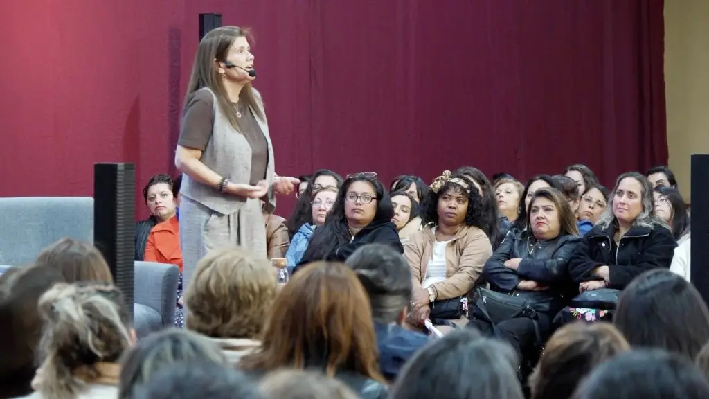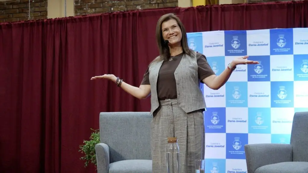 La expositora abordó temas como la autovaloración, la aceptación, el amor propio y el autocuidado en una presentación donde se paseó desde el humor a la emoción, combinando anécdotas personales con profundas reflexiones. “La invitación primero es a que se pregunten cuántas yo hay en ti, esa es una buena pregunta. Y lo segundo es que hoy vuelvan a sus casas, se miren en un espejo, sin decirse nada, sólo mirarse con la mayor dulzura posible. Después empiecen a decirse ‘te quiero, estoy orgullosa de todos tus intentos, sé que quizás no estás bien, pero también sé que has avanzado un montón’. Cuando pido que hagan esto muchas lloran porque no estamos acostumbradas a mirarnos con ternura, a hablarnos bonito, no nos abrazamos, siempre esperamos que alguien más nos abrace, siendo que el primer abrazo debe ser nuestro”, fueron parte de sus palabras.