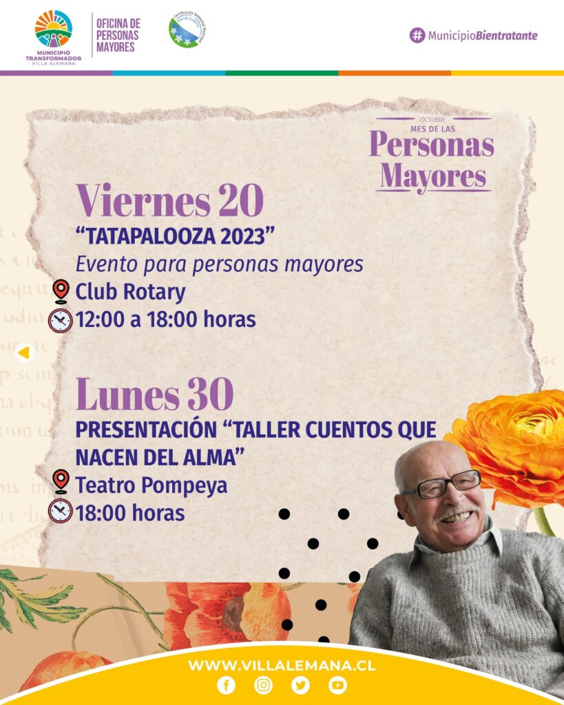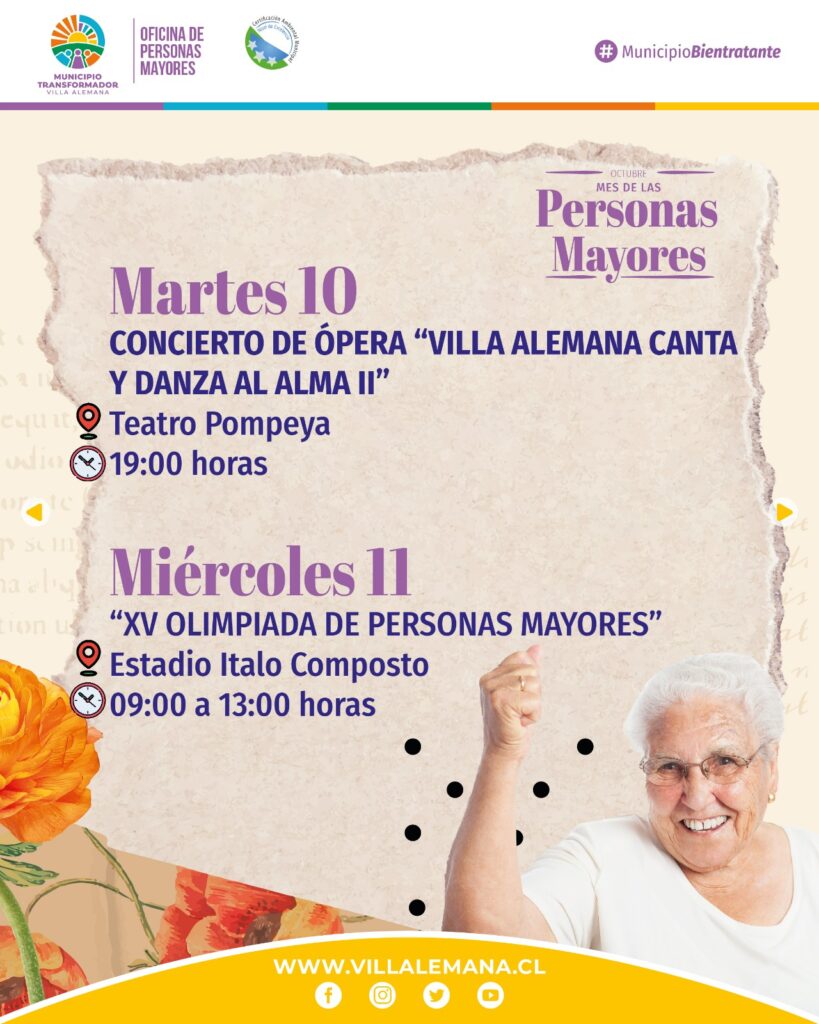 Por eso creamos el calendario de actividades para personas mayores de este mes de octubre, para que lo revisen y se preparen para los distintos eventos.