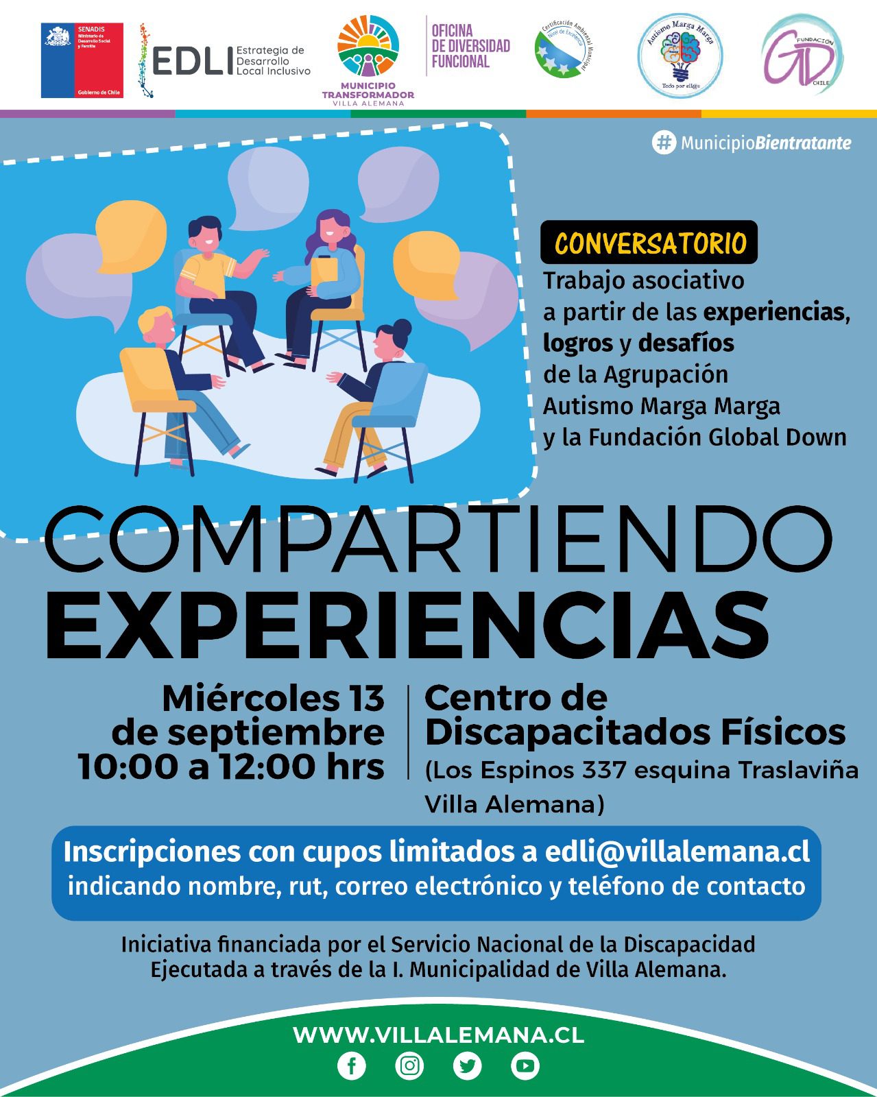 La Oficina de Diversidad Funcional del Municipio Transformador coorganiza junto a la Agrupación Autismo Marga Marga y la Fundación Global Down, el conversatorio Compartiendo Experiencias sobre el trabajo asociativo que llevan realizando hace años.