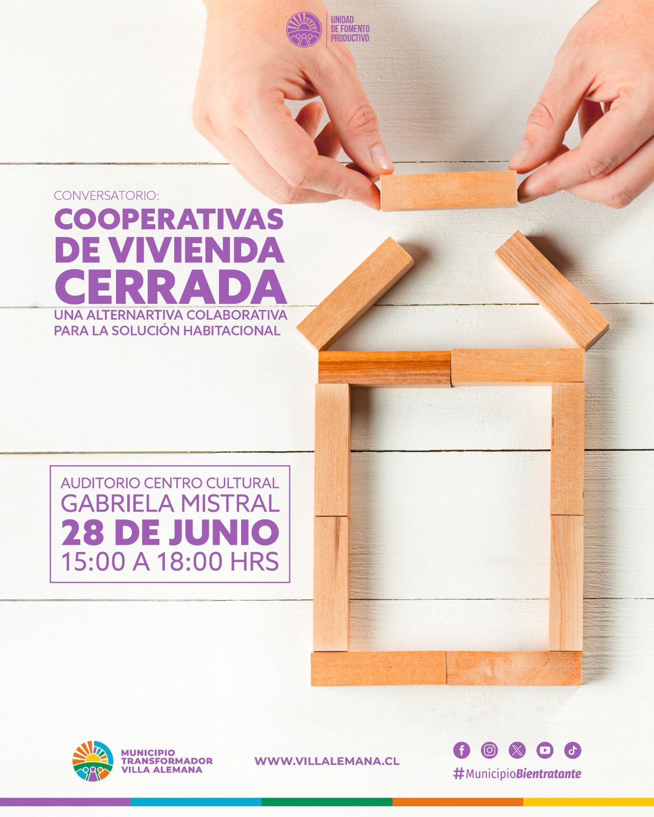 Desde el programa de Economía Social y Cooperativas, tenemos el agrado de invitarles al primer conversatorio de Cooperativas de vivienda de nuestra comuna.