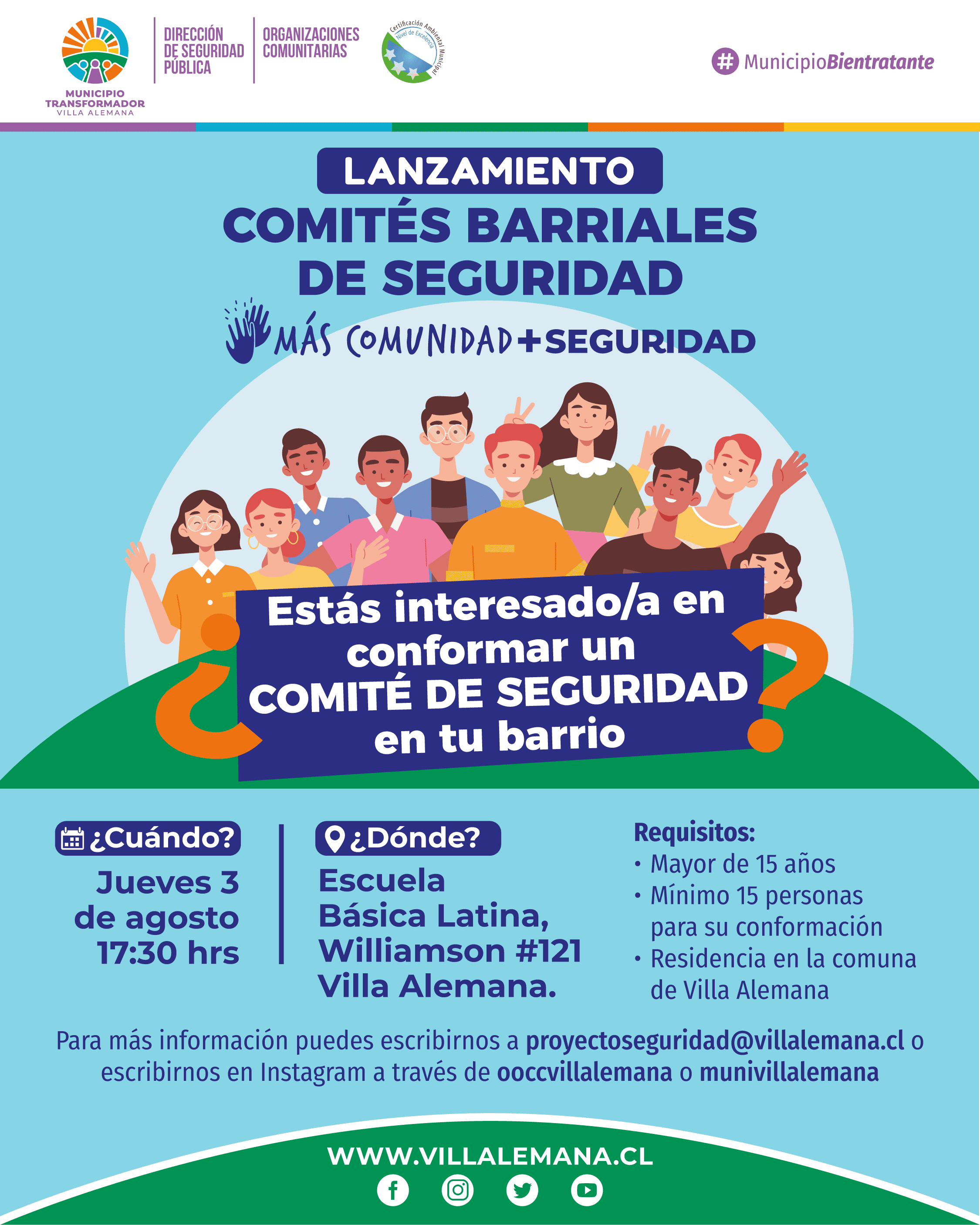 👥 Te invitamos al lanzamiento de esta iniciativa que busca capacitar a nuestros vecinos y vecinas para el abordaje comunitario de la seguridad pública en nuestra comuna, mediante la conformación de Comités Barriales de Seguridad.