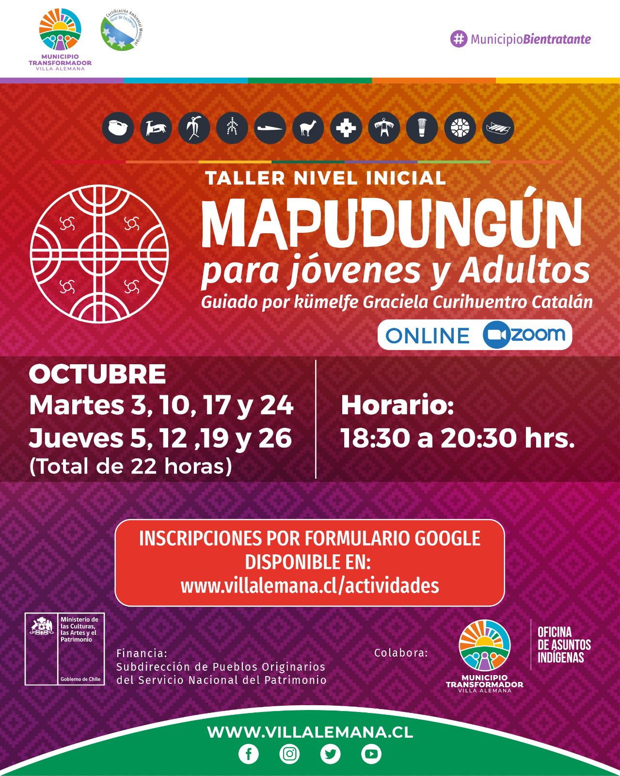 Les invitamos a ser parte. Comenzaremos por el ciclo básico, que les permitirá conocer las nociones básicas de comunicación en mapudungun, además de la cosmovisión, pensamiento y cultura del Pueblo Mapuche.